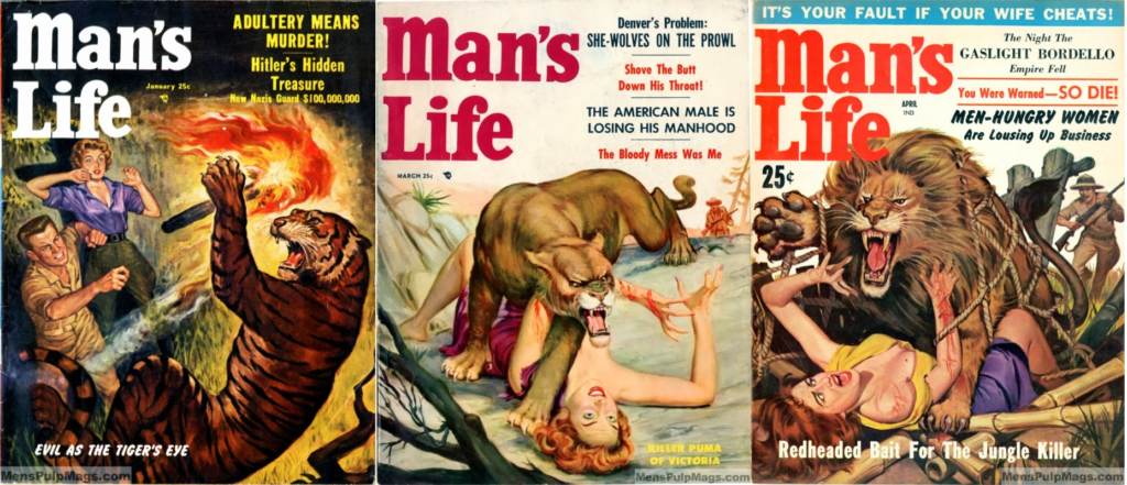 Luros, Milton and Wil Hulsey, Man’s Life cover compilation, “The “killer creature” animal attack covers of MAN’S LIFE magazine…”, ed. Robert Deis, Men’s Pulp Mags, 2013, https://www.menspulpmags.com/the-killer-creature-animal-attack-covers-of-mans-life-magazine/, [Accessed 18th November 2022]